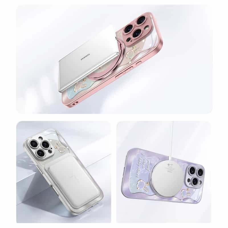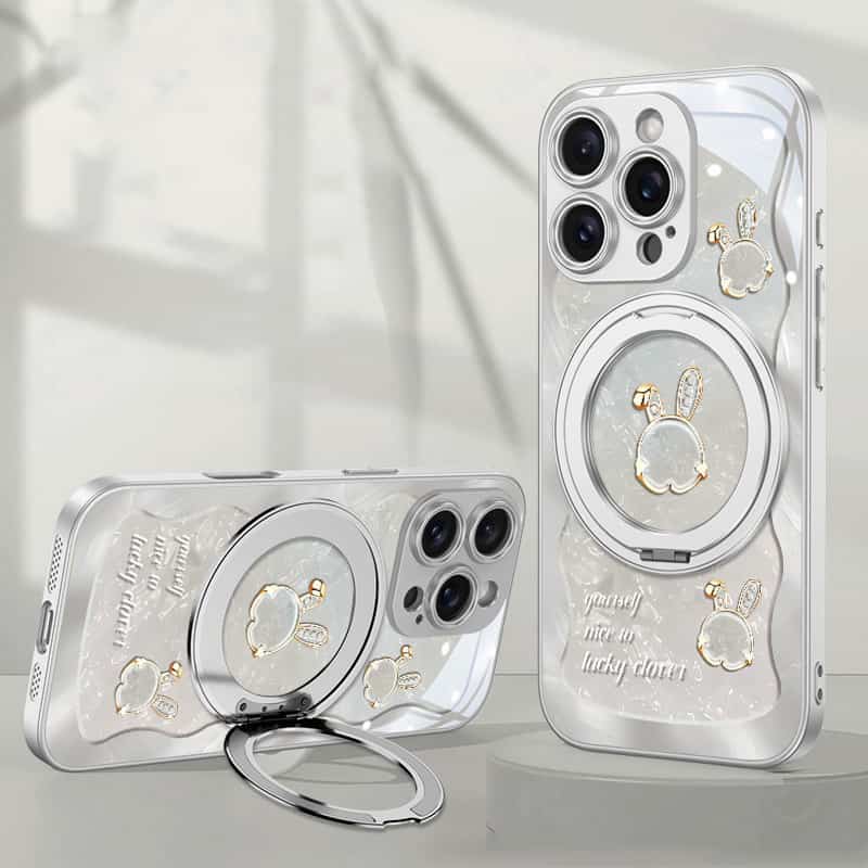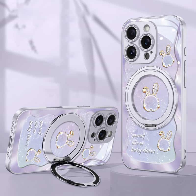 Rose Pink Wavy Shell Texture Rabbit Magsafe (Magnetic) Stand Phone Case for iPhone 15 Series