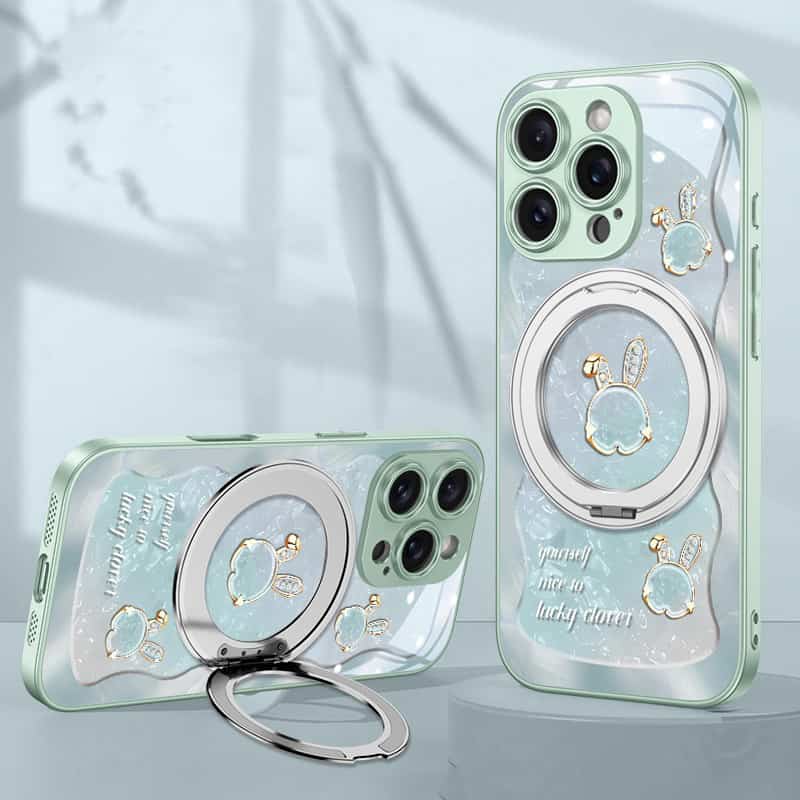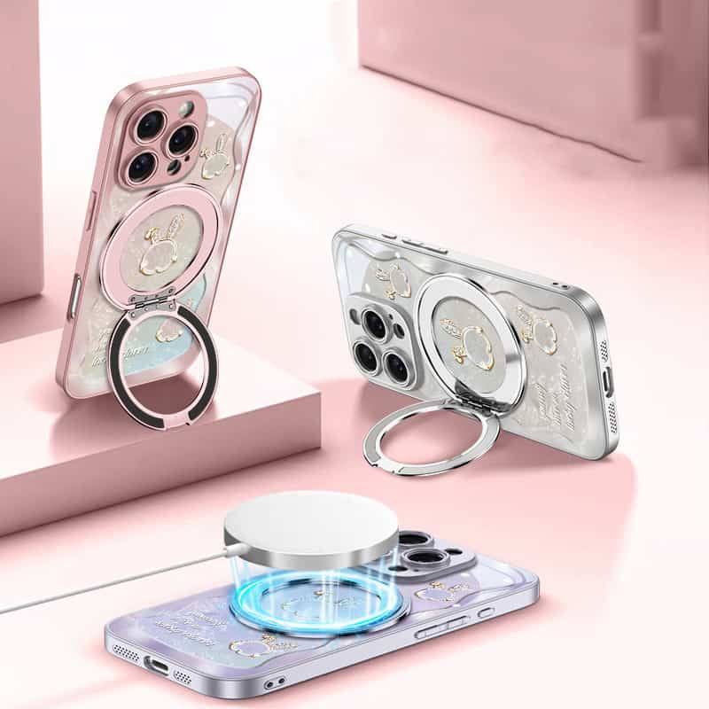 Add a blend of elegance and functionality to your iPhone 14 with the Rose Pink Wave Texture Beiwen Rabbit Magnetic Stand Phone Case. Named for its unique wave texture and charming Beiwen Rabbit design, this case offers style and practicality in one. The integrated 360° magnetic stand allows for effortless hands-free viewing and seamless compatibility with MagSafe accessories, making it perfect for everyday use.